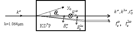 7-6、圖7-7則表示了在KDP晶體中實(shí)現(xiàn)第II類相位匹配過(guò)程中,基波、二次諧波光在晶體內(nèi)外的電場(chǎng)、波矢、光線、相位匹配角及走離角等的示意圖。