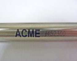 對(duì)于這一應(yīng)用,我們使用Synrad 60W的激光器在鋯合金桿上打上商標(biāo)和編號(hào),激光器配備有FH Flyer打標(biāo)頭、125 mm HP(高放大率)聚焦鏡和Synrad專業(yè)的WinMark Pro打標(biāo)軟件。這樣可得到180 mm (0.007")的光斑大小,因?yàn)楦咔逦鹊臉?biāo)識(shí)需要大功率密度的激光來打標(biāo)。