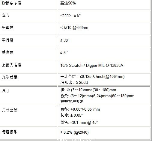 北京捷普的Er:YAG晶體的指標(biāo):