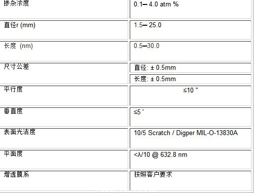 北京捷Nd:YVO4 晶體的指標(biāo):