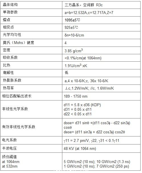 β相偏硼酸鋇(β-BaB2O4, 簡稱BBO)晶體是一種負的單軸晶體,具有如下重要的非線性光學特性: