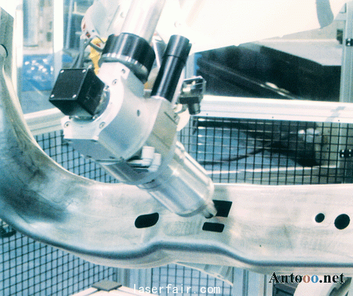 液壓成型管已廣泛地應(yīng)用于新型卡車和SUV的大梁、發(fā)動(dòng)機(jī)支架、吊桿和頂柱,其硬度高、形狀復(fù)雜和重量輕的特點(diǎn)使得該結(jié)構(gòu)的應(yīng)用越來(lái)越廣泛。對(duì)于制造商來(lái)說(shuō),最大的挑戰(zhàn)是從單側(cè)切割這些密封管,過(guò)去,這些件是用先折彎, 然后點(diǎn)焊起來(lái)的裝配方式,因?yàn)槌尚颓笆瞧桨?,因此用傳統(tǒng)的沖床很容易完成,但對(duì)于成型件,沖床則不易加工。采用激光機(jī)器人切割系統(tǒng)和光纖傳導(dǎo)系統(tǒng)可以解決這個(gè)問(wèn)題,同時(shí),用戶還可以在成型工件上進(jìn)行切割。