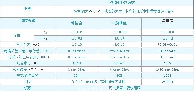 炬科光學(xué)能提供各種高精度的棱鏡。各種棱鏡的技術(shù)參數(shù):