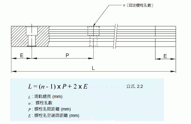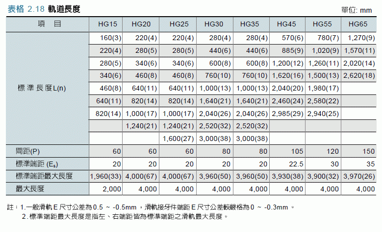 煙臺同升科技發(fā)展有限公司備有滑軌標準長度庫存供應(yīng)客戶需求。假如客戶訂購非標準長度滑軌時,端面距離E的尺寸最好不要大於1/2P,防止因E的尺寸過大導致滑軌裝配后端部的不穩(wěn)定,而降低線性滑軌的精度,亦不可取用過小的E值(小於E)以避免螺栓孔破孔.#p#分頁標題#e#