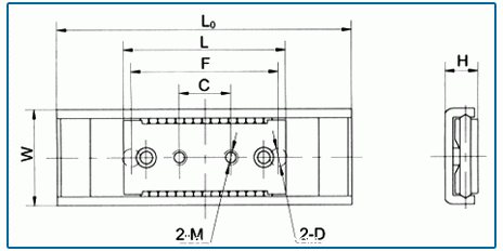 交叉滾子導(dǎo)軌[SGD型] 型號 MODLE W H L0 L F C M D SGD13 13 4.5 40 22 20 7 M2 2.4