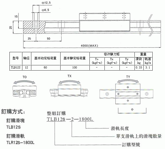 雙軸心式滑軌[TLB12S]