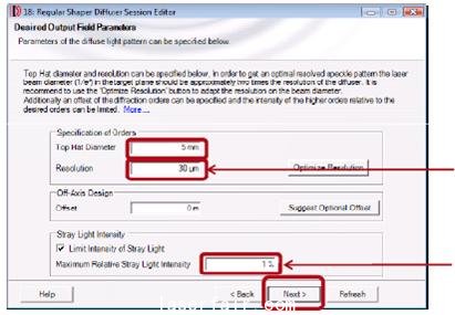 VirtualLAB輔助用戶客戶設(shè)計(jì)衍射光學(xué)元件用于產(chǎn)生擴(kuò)散線(diffuse lines)或頂環(huán)(Top Hats).