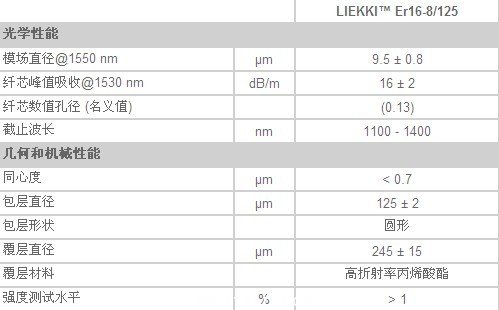 LIEKKI™ Er16-8/125 光纖是大模場面積(LMA)摻餌光纖,適用于中等輸出功率光纖放大器。良好的熔接性能 、出色的功率轉(zhuǎn)換效率、以及良好的光譜重復性和一致性使這種光纖成為目前CATV和PON中中等功率光纖放大器的首選。