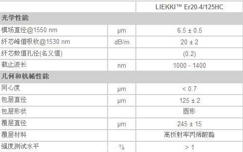 LIEKKI™ Er20-4/125 光纖目前只有高截止波長(zhǎng)(Er20-4/125HC)光纖。