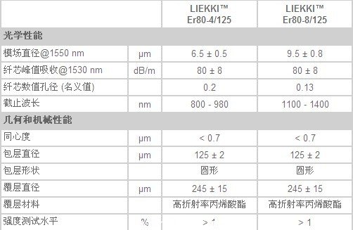 LIEKKI™ Er80-4/125和Er80-8/125 光纖是非常高摻餌濃度大模場面積光纖,適用于中等功率光纖放大器和激光器。