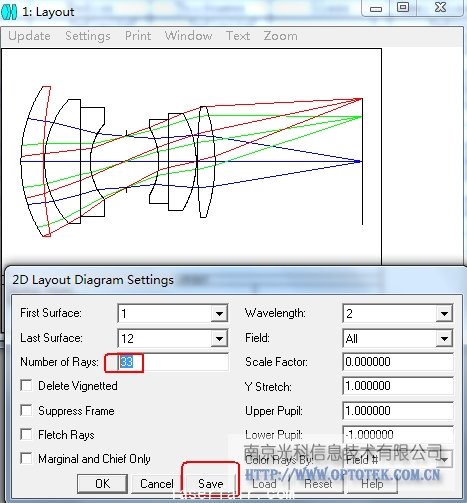 ZEMAX中所有對(duì)話框參數(shù)設(shè)置都可以保存,保存之的便生成.cfg格式文件。這樣保證在任何系統(tǒng) 打開后默認(rèn)的設(shè)置即顯示自己保存的。 例如默認(rèn)打開視圖后輸出光線3條,下面我...