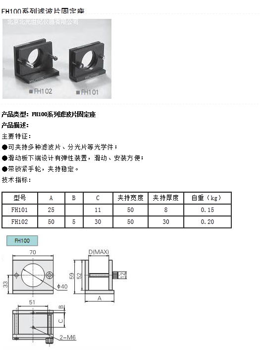 FH100系列濾波片固定座