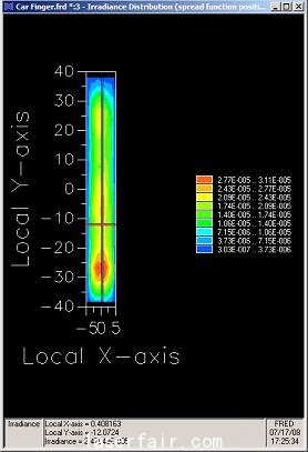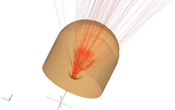 步驟一) 首先, 從FRED光源庫(kù)中選取一顆LED作為光源。 步驟二) 導(dǎo)入由CAD軟件設(shè)計(jì)的指針文件,并將指針和蓋子的材料特性賦予成PMMA 。 步驟三 追跡由LED發(fā)出的10000條光...