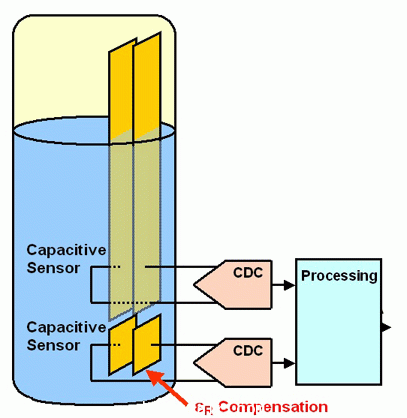 濕度傳感器是電介質(zhì)傳感器的經(jīng)典例子,使用濕度敏感聚合物層作為電介質(zhì)。隨著濕度的增加,堆積越來越多的水分子,因此εr增大。傳感器檢測液體(如油或燃料)的純度,實質(zhì)由兩塊固定的導板構(gòu)成,液體自身形成電介質(zhì)。必需的液體特性根據(jù)經(jīng)驗來確定(例如:油或燃料中增加的水份)。溫度起到?jīng)Q定性的作用,也必須可靠地確定。測量電介質(zhì)變化的簡單的接近傳感器,通常需要最復雜的測量電子學。