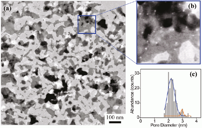 中科院物理研究所/北京凝聚態(tài)物理國家實(shí)驗(yàn)室(籌)的表面物理國家重點(diǎn)實(shí)驗(yàn)室趙繼民副研究員在進(jìn)行表面及納米體系的超快光學(xué)研究中,采用上述方法制備銀納米結(jié)構(gòu),在觀測到個(gè)別非球形納米結(jié)構(gòu)之后,改進(jìn)了國際上現(xiàn)有的方法,研究和改變了各種復(fù)雜的實(shí)驗(yàn)條件以求制備出較小尺寸的銀納米孔。他與表面物理國家重點(diǎn)實(shí)驗(yàn)室孟勝研究員一起,細(xì)致分析了實(shí)驗(yàn)中觀察到的超小銀納米孔形成的微觀物理機(jī)制,并基于密度泛函理論構(gòu)造了納米孔形成的分子層次模型,揭示了其中包覆劑分子如何起到關(guān)鍵作用;并與先進(jìn)材料與結(jié)構(gòu)分析實(shí)驗(yàn)室楊槐馨研究員、納米物理與器件實(shí)驗(yàn)室徐紅星研究員等通力合作,進(jìn)行了大量的實(shí)驗(yàn)表征和探索,制備出的納米孔達(dá)到直徑為2.3nm,深度為3nm。