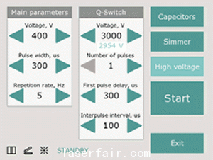 的輸出電壓、脈寬、脈沖頻率和Q開關電源的輸出電壓、脈沖數(shù)、脈沖延時、脈沖間距等。