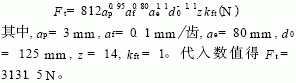 (2)切削參數(shù)(最大銑削力狀況),使用高速鋼端面銑刀銑削中碳鋼工件時(shí),刀具直徑為125mm,最大銑削速度為40m/min。