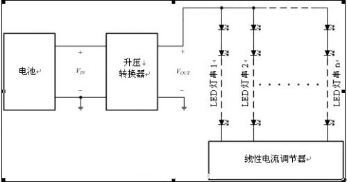 圖1.由升壓轉(zhuǎn)換器和線性電流調(diào)節(jié)器組成的LED驅(qū)動(dòng)器