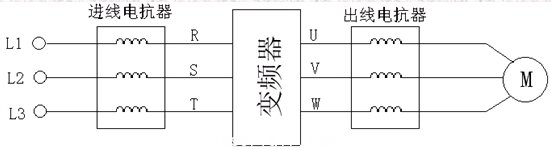 變頻器輸出側(cè)安裝輸出電抗器,減少電纜的電磁輻射和位移電流;