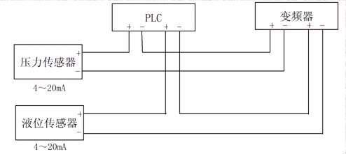 對(duì)于傳感器輸出的電流信號(hào),只經(jīng)PLC和變頻器的輸入阻抗之和不大于傳感器的輸出負(fù)載阻抗即可,壓力傳感器的信號(hào)可以同時(shí)串入PLC和變頻器,如只有壓力傳感器信號(hào),則PLC和變頻器也都可以正常接收壓力傳感器的信號(hào)。而當(dāng)液位傳感器的信號(hào)也同時(shí)接入PLC和變頻器時(shí),因PLC接收信號(hào)的-端都在變頻器的+端,當(dāng)兩傳感器的信號(hào)電流不一樣時(shí),就有可能使PLC兩-端的電位有較大的差異,就就形成了共模干擾電壓。如PLC輸入端又互相不是隔離的,則會(huì)造成PLC的模擬信號(hào)輸入端接收不正常。變頻器的兩輸入信號(hào)是在PLC的后面,其-端電位可保持在變頻器內(nèi)部電路設(shè)定的狀態(tài),問題不大。