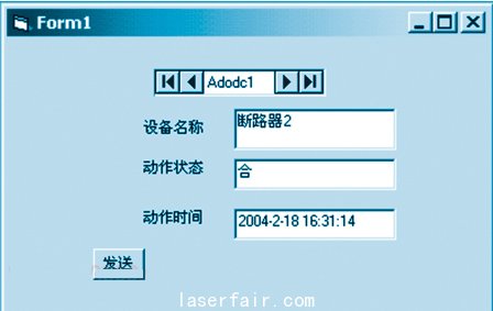 其中“設(shè)備名稱”“動作狀態(tài)”“動作時間”是所綁定的數(shù)據(jù)庫的字段名,等號后面的值是滿足條件語句時向所綁定的數(shù)據(jù)庫的相應(yīng)的字段所加的字段值,在本工程中在數(shù)組rcv中暫放了從接收緩沖區(qū)中接收到的所有數(shù)據(jù),而rcv(5)所放置的是是否合斷路器1這個動作信息,約定plc送上來的數(shù)據(jù)中 rcv(5)=1表示合斷路器1,因此有上述語句,其他的動作狀態(tài)記錄、故障狀態(tài)記錄及日常量記錄與上述程序幾乎相同,但是由于日常量不需要每時每刻都要記錄到數(shù)據(jù)庫,因此在日常量向數(shù)據(jù)庫寫入時用了靜態(tài)變量count來計時,假如count的值每增加1時間就增加1s,要求每半個小時記錄一次,那么就可以用count mod 1800 =0來實現(xiàn)這一時間的控制。