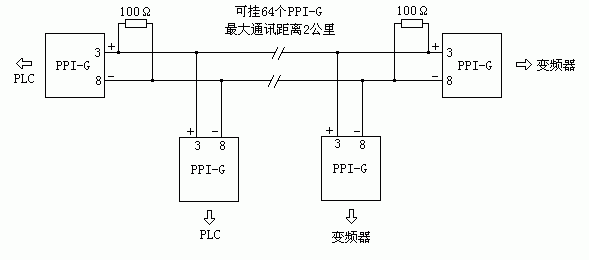 解決以上問題的最簡單辦法是在PLC和變頻器的通訊口加光電隔離,如圖是采用德陽四星電子技術(shù)開發(fā)中心生產(chǎn)的PPI-G光隔離器組成的PLC和變頻器通訊網(wǎng)絡(luò),由圖可見,所有設(shè)備均被隔離,整個通訊線路被浮空,有效的抑制了干擾的進(jìn)入,也徹底解決了由于設(shè)備接地問題而引起的串?dāng)_,同時由于PPI-G產(chǎn)品本身的抗雷擊和延長通訊距離的功能,無疑會使系統(tǒng)的可靠性得到很大提高。