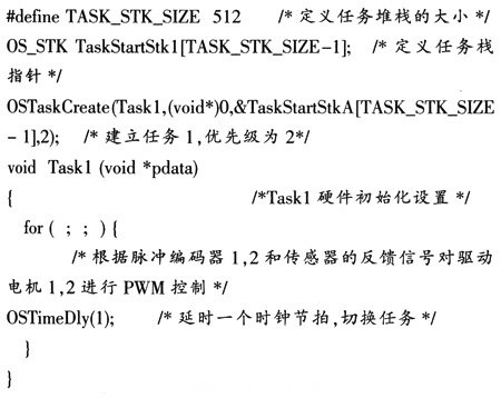 μC/OS一Ⅱ任務(wù)的建立包括定義任務(wù)堆棧、設(shè)定任務(wù)優(yōu)先級、初始化該任務(wù)要求的系統(tǒng)硬件及實現(xiàn)具體的控制過程等4部分?,F(xiàn)以任務(wù)1為例,介紹應(yīng)用任務(wù)的建立過程。#p#分頁標(biāo)題#e#