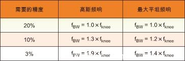 表1:根據(jù)需要的精度和示波器頻率響應(yīng)的類型計(jì)算示波器所需帶寬的系數(shù)