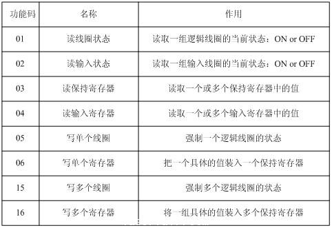 圖3 Modbus協(xié)議常用功能碼