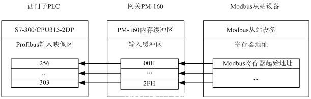 圖15 PLC通過PM-160讀寫Modbus從站設(shè)備數(shù)據(jù)地址對應(yīng)關(guān)系