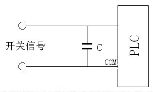 有時(shí)PLC或其它控制器的開關(guān)量輸入由于受外界干擾影響而瞬間輸入錯(cuò)誤,導(dǎo)致PLC產(chǎn)生誤動(dòng)作,這時(shí)在PLC的輸入端并上一個(gè)0.1uF的小電容就可以消除這種干擾,如下圖所示: