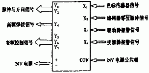 控制系統(tǒng)的核心器件是FPOC16T,其輸入信號包括:交流伺服驅(qū)動器的輸出信號(編碼器零位脈沖輸出,報警輸出)、色標(biāo)傳感器信號和變頻器報警信號。其輸出信號包括:交流伺服驅(qū)動器的輸入信號(脈沖輸入信號,脈沖方向輸入信號)、變頻器啟動信號及頻率設(shè)定選擇信號、高頻焊接信號。PLC的I/O(輸入與輸出)信號分配如圖2所示。