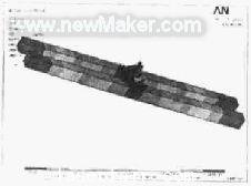 x梁的模擬結(jié)果如圖2所示,通過模擬的結(jié)果我們可以看出,在受力方向上,最大的應(yīng)變是0.6×10-5m,這說明我們的變形是在允許的范圍之內(nèi)的。