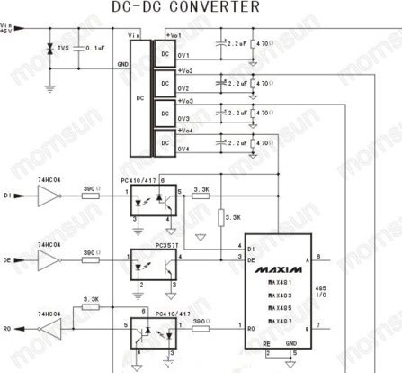 金升陽 MORNSUN四路隔離型RS-485典型應用方案