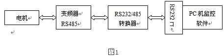 現(xiàn)在一般的pc機都有rs232串口,但少有rs485口,而實現(xiàn)與變頻器進行長距離且抗噪音干擾的通信,一般多采用一塊rs232/485轉(zhuǎn)換器,總體的系統(tǒng)方框圖如圖1
