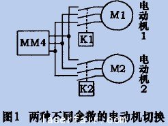 以上3種工作狀態(tài)在同一時(shí)刻只允許有一種運(yùn)行,互不干擾,這樣才能保證變頻器的正常運(yùn)行。這就要求要從外界通過(guò)變頻器的數(shù)字量輸入介入來(lái)控制兩種驅(qū)動(dòng)圖1兩種不同參數(shù)的電動(dòng)機(jī)切換電動(dòng)機(jī)參數(shù)的切換。在變頻器的運(yùn)行或準(zhǔn)備狀態(tài)階段利用一個(gè)或多個(gè)外部信號(hào)同時(shí)改變參數(shù)組,從而達(dá)到一臺(tái)變頻器控制兩臺(tái)及多臺(tái)電動(dòng)機(jī),如圖1所示。