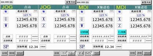 X軸、Z軸、U軸、W軸的運動控制命令均在DVP20PM00D內(nèi)部編程實現(xiàn),JOG、MDI、循環(huán)等運動命令均在20PM主程序內(nèi)完成。