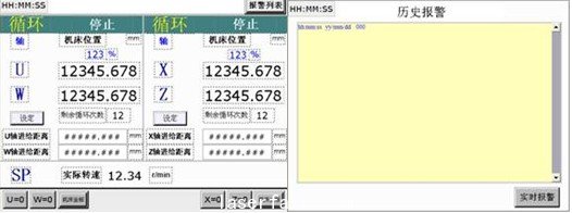 人機界面主要畫面如圖4所示。采用臺達人機畫面可以根據(jù)客戶機床工藝技術(shù)特點,編程組態(tài)各種人性化、方便操控的畫面和功能軟元件,相比數(shù)控系統(tǒng)來說,畫面更加簡約、直觀,操控更加便利、高效。