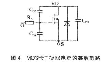 以驅(qū)動N溝道MOSFET管為例來介紹。功率MOS—FET是電壓型驅(qū)動器件,沒有少數(shù)載流子的存儲效應(yīng),輸入阻抗高,因而開關(guān)速度可以很高,驅(qū)動功率小,電路簡單。但功率MOSFET的極間電容較大,其等效電路如圖4所示。