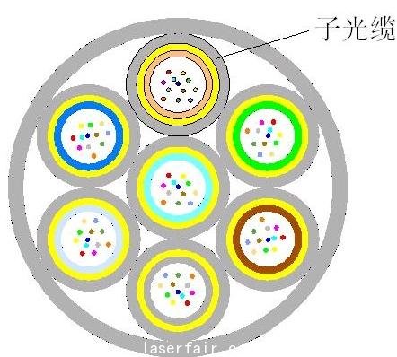 子光纜的中間是松套光纖,外面可以用紡綸或玻璃纖維來加強,外面可以用色條來分別不同的子光纜。子光纜的第二個形式是鍍鋼絲的,里面還是用松套,外面則根據(jù)用戶對子光纜的要求不一樣來做調(diào)整。