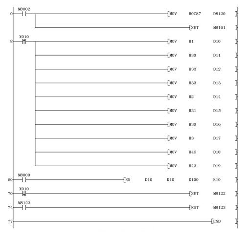 使用無順序協(xié)議需要對通訊規(guī)格D8120 進(jìn)行設(shè)定。其中包含波特率,數(shù)據(jù)長度,奇偶校驗,停止位和協(xié)議格式等。這里對D8120設(shè)置如下: