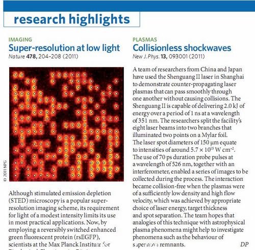 神光裝置用戶物理成果被Nature Photonics選為研究亮點報道