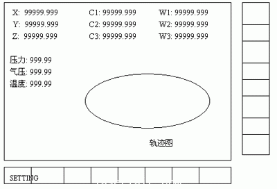如: OEM0中9個軸位置,各物理量值及工件軌跡的顯示等