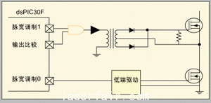 如果高端器件的柵極驅(qū)動必須保持連續(xù),那么必須使用浮動電路來產(chǎn)生比直流總線電壓高10 V至15 V的電壓。我們可以采用充電泵電路,它的電壓是相對高端晶體管的源極電壓而言的。另一種方法則是用一個高頻信號來調(diào)制柵極信號,這樣在柵極驅(qū)動信號出現(xiàn)時,高頻信號也會出現(xiàn)。在圖2中,調(diào)制信號通過一只變壓器耦合到晶體管的柵極和源極,并在變壓器的次級經(jīng)過整流產(chǎn)生柵極驅(qū)動電壓。但是,這兩種方法都會增加設(shè)計的成本。
