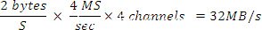 例如,一臺16-bit的設備(兩個字節(jié)),其四路通道的采樣率為4 MS/s,有: