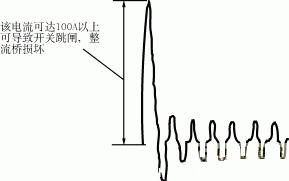 開關(guān)電源的輸入電路大都采用整流加電容濾波電路。在輸入電路合閘瞬間,由于電容器上的初始電壓為零會(huì)形成很大的瞬時(shí)沖擊電流(如圖1所示),特別是大功率開關(guān)電源,其輸入采用較大容量的濾波電容器,其沖擊電流可達(dá)100A以上。在電源接通瞬間如此大的沖擊電流幅值,往往會(huì)導(dǎo)致輸入熔斷器燒斷,有時(shí)甚至將合閘開關(guān)的觸點(diǎn)燒壞,輕者也會(huì)使空氣開關(guān)合不上閘,上述原因均會(huì)造成開關(guān)電源無法正常投入。為此幾乎所有的開關(guān)電源在其輸入電路設(shè)置防止沖擊電流的軟起動(dòng)電路,以保證開關(guān)電源正常而可靠的運(yùn)行。