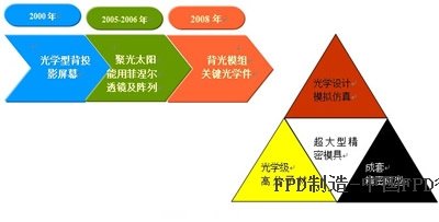 整個TFT-LCD生產制程中,LCD背光模組技術壁壘較高,背光模組中幾大關鍵部件---導光板、擴散膜、棱鏡片(增光膜)等這些功能光學件的關鍵技術基本掌握在美、日、韓、中國臺灣等少數企業(yè)手中。