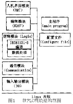 現(xiàn)今PC104 的硬件水平可以達(dá)到P2 或者P3 一級(jí),CPU 速度足夠快,內(nèi)存可到128M,程序存儲(chǔ)空間可以選用CF 卡作為硬存儲(chǔ)空間,可以達(dá)到128M,且可通過PC104 接口擴(kuò)展其硬件I/O 能力,可增加軟PLC 的I/O 口,豐富的硬件資源完全可以滿足運(yùn)行軟PLC 的需要。這也使得設(shè)計(jì)時(shí)完全可以在普通PC 上,在Linux 內(nèi)核下對(duì)軟PLC 的各個(gè)模塊進(jìn)行調(diào)試,調(diào)試成功再移植到PC104 組件上運(yùn)行。