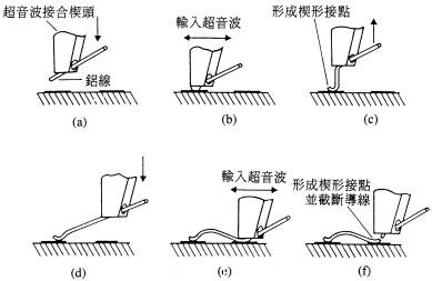 第二種壓焊方法是楔形制程,這種制程主要使用鋁線,但也可用金線,通常都在室溫下進行。楔焊將兩個楔形焊點壓下形成連接,在這種制程中沒有球形成。鋁線焊接制程被歸為超聲波線焊,形成焊點只用到超聲波能、壓力以及時間等參數(shù)。