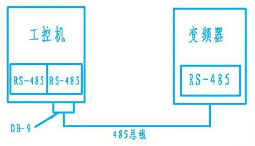 本系統(tǒng)所采用的通訊方式是利用美國ni公司的工控機與臺達vfd-b系列變頻器的rs-485串口通訊。工控機的控制器為nipxi-8106,自帶1個rs-232通訊串口。由于系統(tǒng)還需要與儀表和plc通訊,而且變頻器、儀表和plc三者之間的通訊協(xié)議不同,工控機另配有1塊串行通訊模塊nipxi-8431(含有兩個rs-485串口)。使用工控機rs-232串口和臺達變頻器的rs-485串口通訊,中間需加rs-232/rs-485轉換器,如圖1所示。如果使用串行通訊模塊nipxi-8431的rs-485串口,須用db-9連接器連接工控機的rs-485串口與變頻器的rs-485串口,如圖2所示